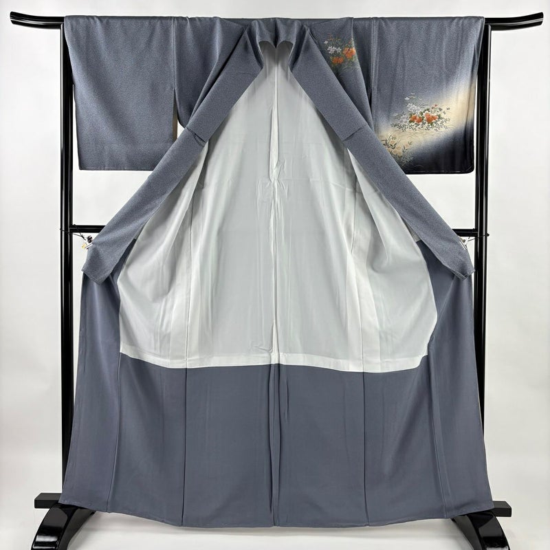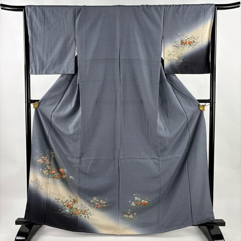 【付下げ】 灰色系 青灰色 秀品 B 約160cm~約169cm 裄丈66cm (M)size 袖丈49cm 4000-7980 二万以下
