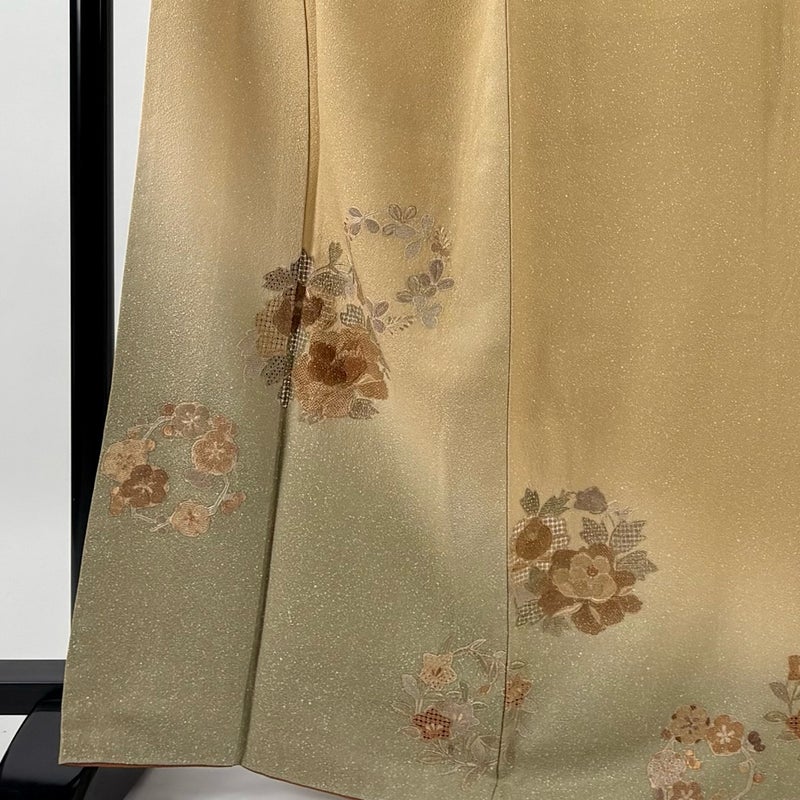 【着物ランク】秀品 【素材】正絹 【身丈】約167cm 【裄丈】約67cm 【袖丈】約49cm 【袖幅】約33cm 【前幅】約24cm 【後幅】約30.5cm 【サイズ】M 【着物仕立て】袷 【着用時期】10~5月 【状態ランク】ランクA 【着物着用シーン】披露宴、パーティー、式典、食事会、お茶会、正月