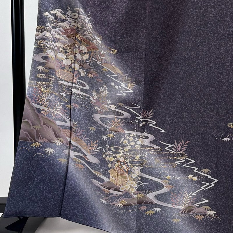 【着物ランク】秀品 【素材】正絹 【身丈】約165cm 【裄丈】約67cm 【袖丈】約49cm 【袖幅】約34.5cm 【前幅】約25cm 【後幅】約30.5cm 【サイズ】M 【着物仕立て】袷 【着用時期】10~5月 【状態ランク】ランクB 【着物着用シーン】披露宴、パーティー、式典、食事会、お茶会、正月