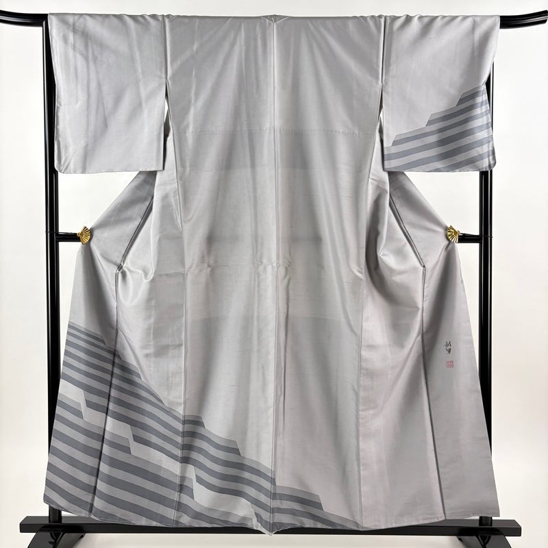 【付下げ】 灰色系 灰色 秀品 A 約150cm~約159cm 裄丈67cm-68cm (M)size 袖丈49cm 7990-9980 美品 二万以下