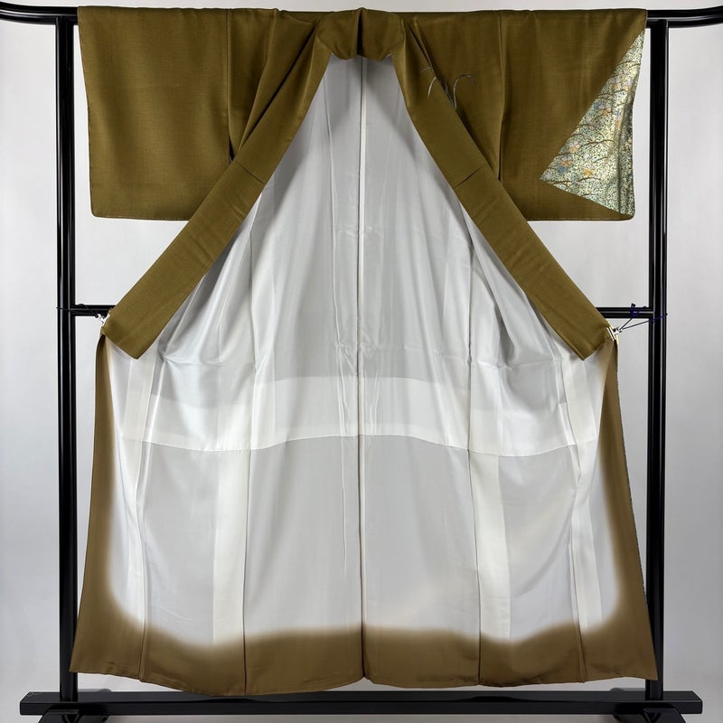 【付下げ】 茶系 茶緑色 秀品 B 約150cm~約159cm 裄丈62cm以下 (S)size 袖丈46cm以下 4000-7980 二万以下