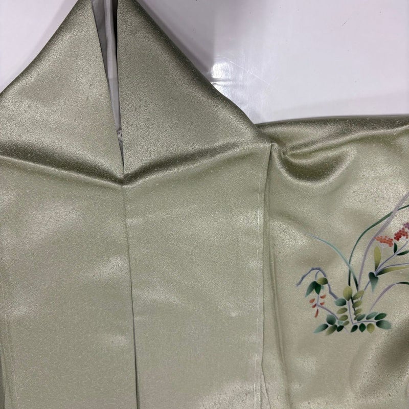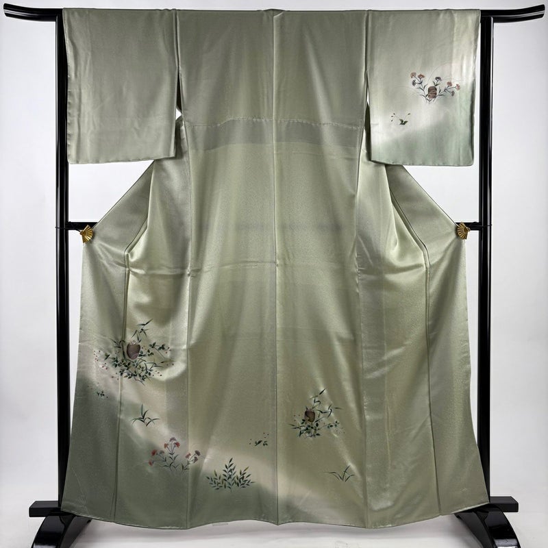 【付下げ】 灰色系 灰緑 秀品 A 約160cm~約169cm 裄丈63cm-64cm (M)size 袖丈49cm 7990-9980 美品 二万以下