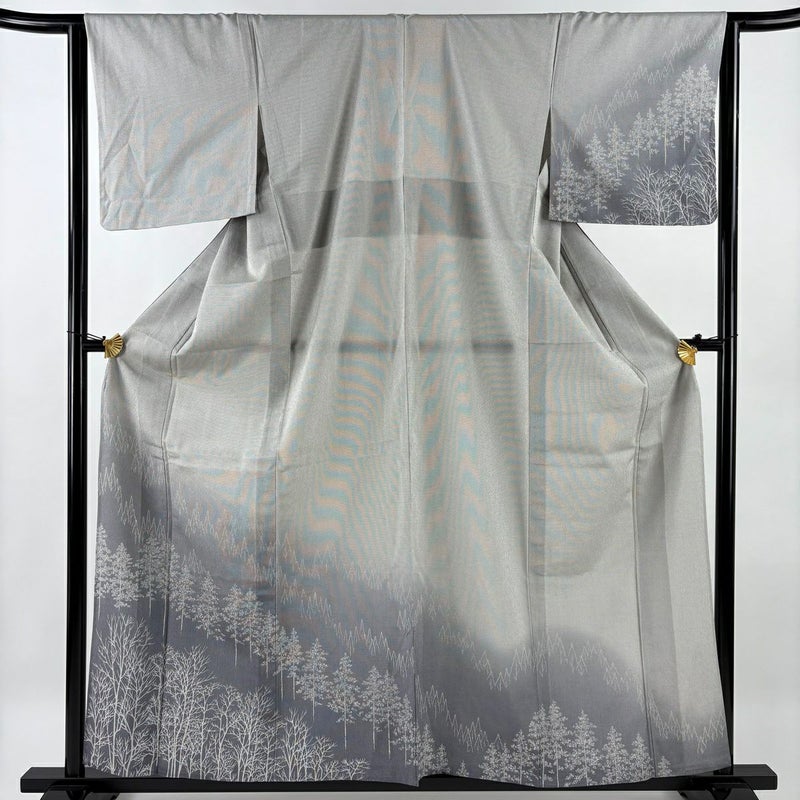 【付下げ】 灰色系 灰色 秀品 B 約160cm~約169cm 裄丈63cm-64cm (M)size 袖丈46cm以下 9990-29990 二万以下