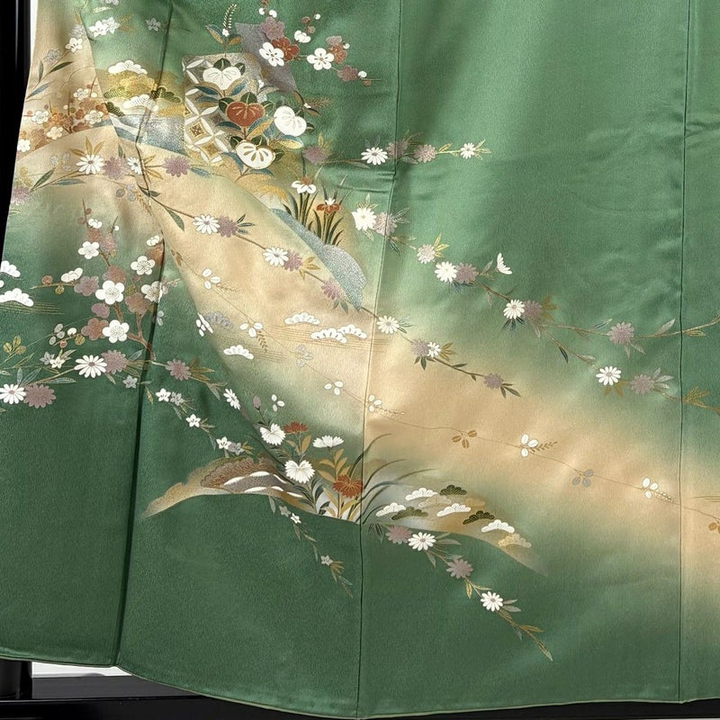 【付下げ】 緑系 緑 秀品 B 約150cm~約159cm 裄丈65cm (M)size 袖丈48cm 4000-7980 二万以下