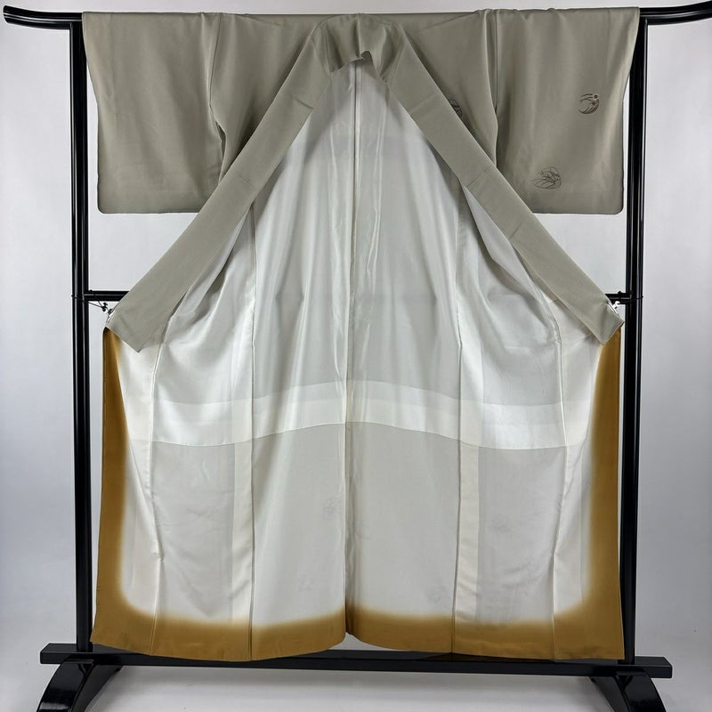 【付下げ】 灰色系 灰緑 秀品 B 約150cm~約159cm 裄丈63cm-64cm (M)size 袖丈47cm 4000-7980 二万以下
