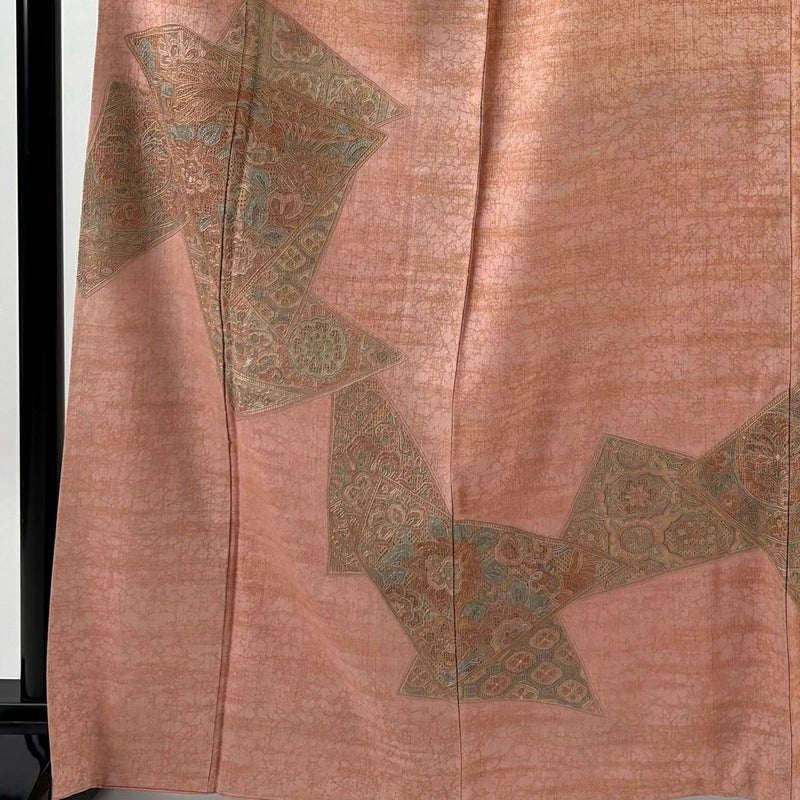 【着物ランク】秀品 【素材】正絹 【身丈】約167.5cm 【裄丈】約66.5cm 【袖丈】約49cm 【袖幅】約33.5cm 【前幅】約22cm 【後幅】約29.5cm 【サイズ】M 【着物仕立て】袷 【着用時期】10~5月 【状態ランク】ランクB 【着物着用シーン】披露宴、パーティー、式典、食事会、お茶会、正月