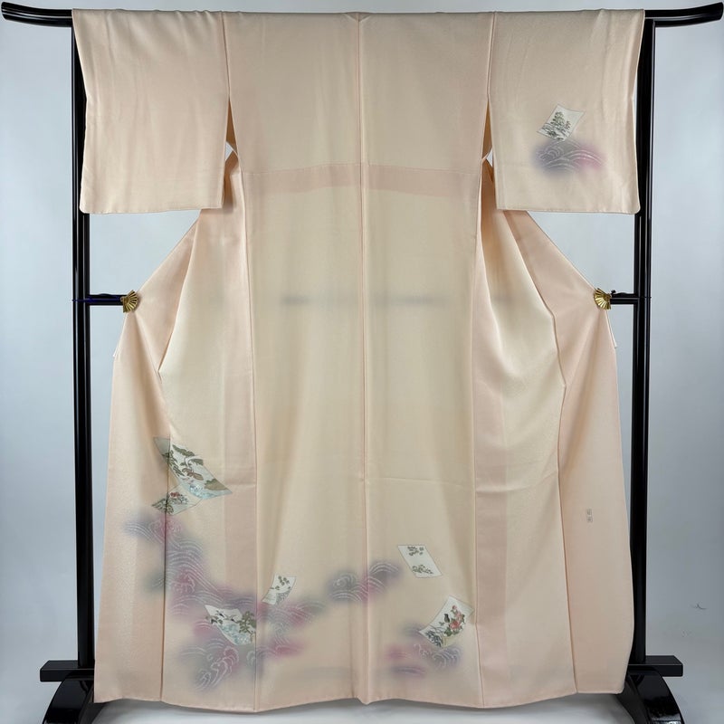 【付下げ】 赤系 薄ピンク 秀品 B 約160cm~約169cm 裄丈63cm-64cm (M)size 袖丈48cm 4000-7980 二万以下