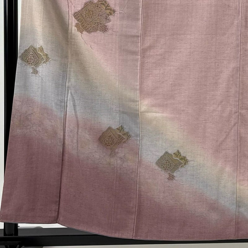 合わせる帯の色柄により、お召しいただく席を選べる付下げです。 帯により印象を変える事の出来る印象のお着物は、様々に活躍してくれることでしょう。 表地所々にヤケ、後身頃の裾付近にシミ、衿周りや両袖口中に汚れ、表地所々にシワ、表地所々に金彩の変色、表地所々に金糸の変色がございます。 八掛所々にシミ、裏地所々にシワがございます。 リユース品としては良い状態で、まだまだご活用頂けると思われます。 ※なお、厳しく商品の状態確認を行っておりますが、記載の汚れ以外にも見落とし箇所がある可能性がある旨ご了承いただけますと幸いです。 沢山の商品の中からご覧いただき誠にありがとうございます。 【PR2】