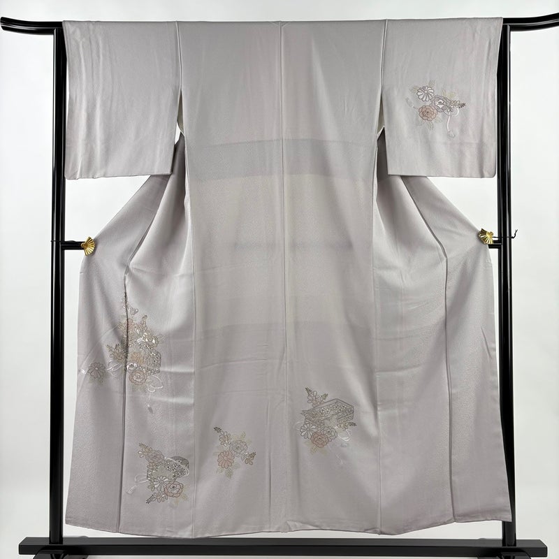 【着物ランク】秀品 【素材】正絹 【身丈】約155cm 【裄丈】約64.5cm 【袖丈】約48.5cm 【袖幅】約33.5cm 【前幅】約22.5cm 【後幅】約28cm 【サイズ】M 【着物仕立て】袷 【着用時期】10~5月 【状態ランク】ランクC 【着物着用シーン】披露宴、パーティー、式典、食事会、お茶会、正月