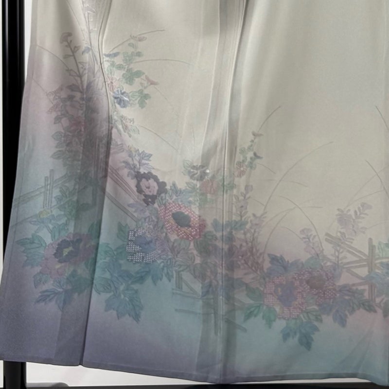 【着物ランク】秀品 【素材】正絹 【身丈】約156cm 【裄丈】約65cm 【袖丈】約47cm 【袖幅】約34cm 【前幅】約25.5cm 【後幅】約30.5cm 【サイズ】M 【着物仕立て】単衣 【着用時期】6/9月 【状態ランク】ランクC 【着物着用シーン】披露宴、パーティー、式典、食事会、お茶会、正月