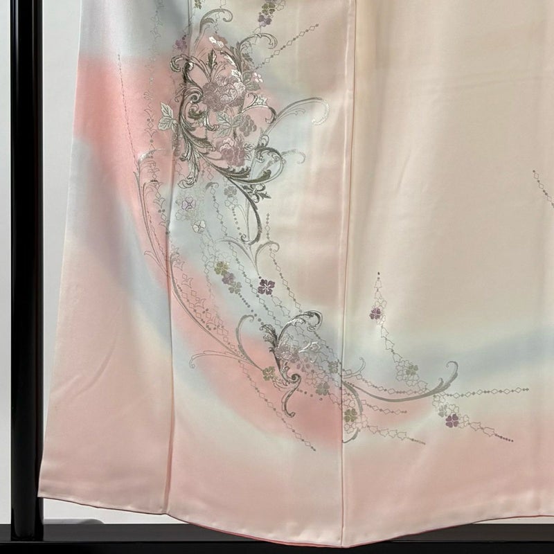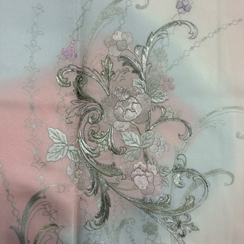 【着物ランク】秀品 【素材】正絹 【身丈】約156cm 【裄丈】約64cm 【袖丈】約59.5cm 【袖幅】約33.5cm 【前幅】約23cm 【後幅】約29cm 【サイズ】M 【着物仕立て】袷 【着用時期】10~5月 【状態ランク】ランクB 【着物着用シーン】披露宴、パーティー、式典、食事会、お茶会、正月