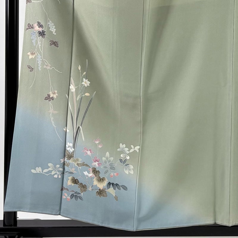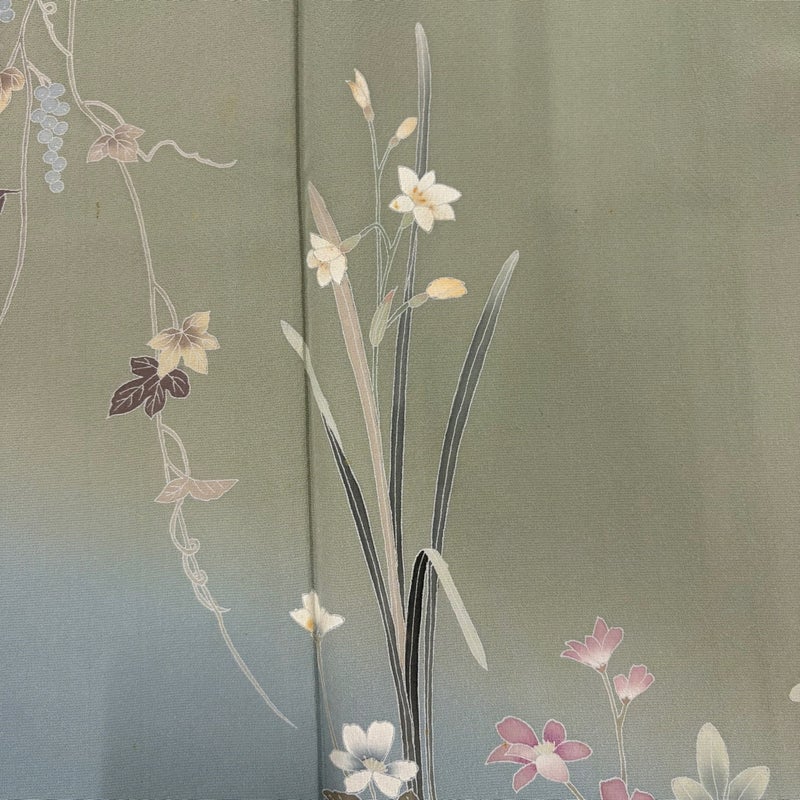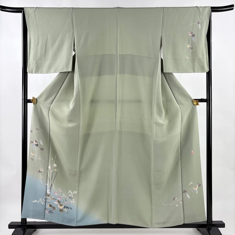 【付下げ】 灰色系 灰緑 秀品 C 約150cm~約159cm 裄丈63cm-64cm (M)size 袖丈47cm 4000-7980 二万以下