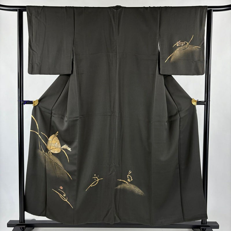 【付下げ】 茶系 茶緑色 秀品 B 約150cm~約159cm 裄丈63cm-64cm (S)size 袖丈48cm 4000-7980 二万以下