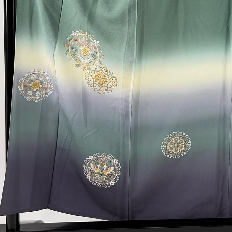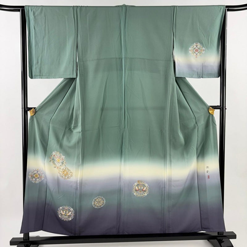 【付下げ】 灰色系 灰緑 秀品 B 約150cm~約159cm 裄丈63cm-64cm (M)size 袖丈48cm 9990-29990 二万以下