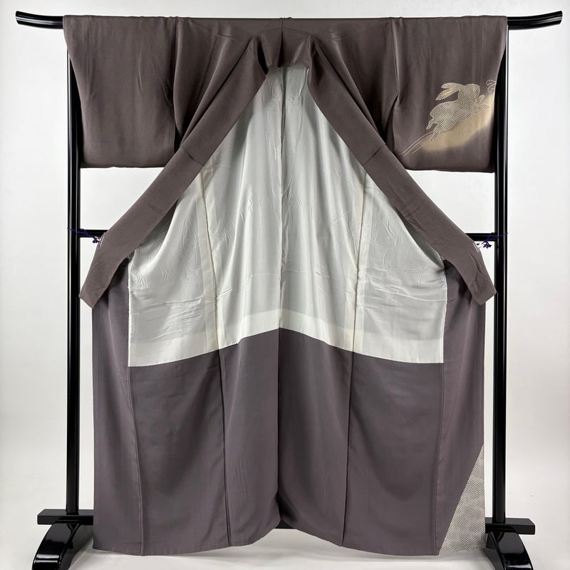 【付下げ】 茶系 茶紫 秀品 B 約160cm~約169cm 裄丈67cm-68cm (L)size 袖丈48cm 4000-7980 二万以下