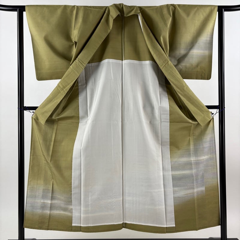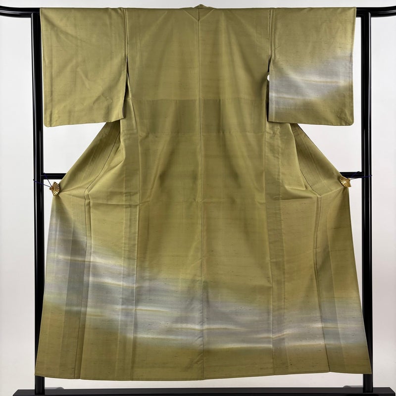 【付下げ】 緑系 鶯色 秀品 A 約150cm~約159cm 裄丈62cm以下 (S)size 袖丈49cm 9990-29990 美品 二万以下