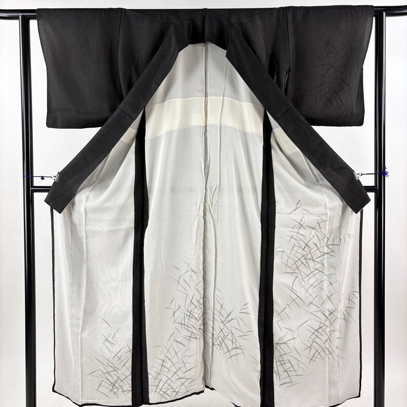 【付下げ】 黒系 黒 秀品 A 約150cm~約159cm 裄丈62cm以下 (S)size 袖丈46cm以下 9990-29990 美品 二万以下