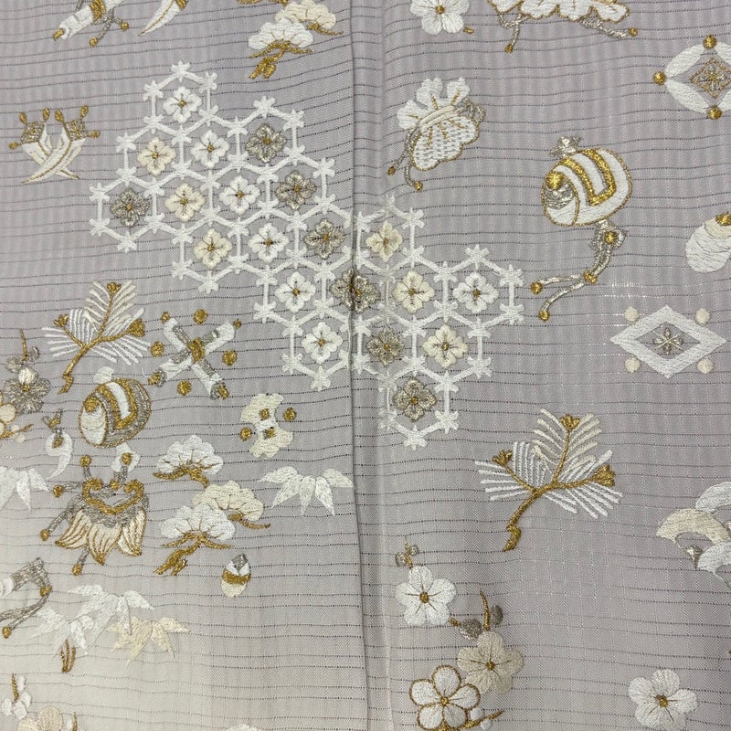 合わせる帯の色柄により、お召しいただく席を選べる付下げです。 帯により印象を変える事の出来る印象のお着物は、様々に活躍してくれることでしょう。 ※身丈・裄丈の縫込みの長さは測っておりません。 後身頃の所々と右後袖にシミ、両前袖に薄いシミ、両衿に汚れ、下前にシワ、表地所々に金銀糸の変色がございます。 ご購入の際はその点ご留意ください。 ※なお、厳しく商品の状態確認を行っておりますが、記載の汚れ以外にも見落とし箇所がある可能性がある旨ご了承いただけますと幸いです。 沢山の商品の中からご覧いただき誠にありがとうございます。