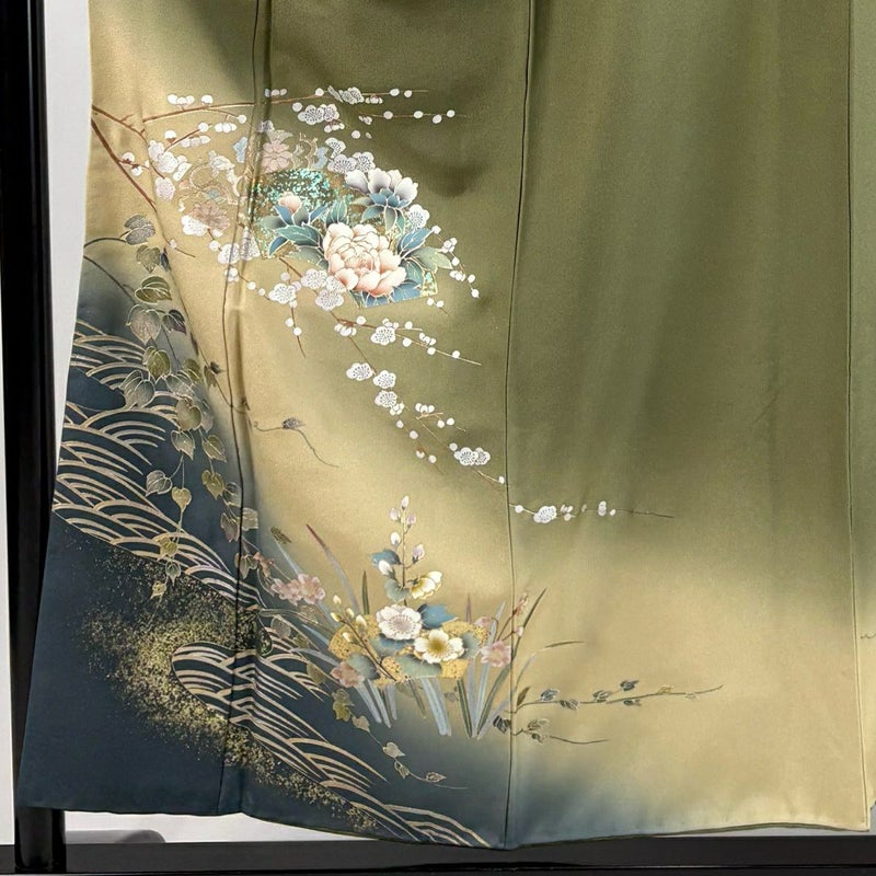【着物ランク】秀品 【素材】正絹 【身丈】約154.5cm 【裄丈】約63cm 【袖丈】約48cm 【袖幅】約32.5cm 【前幅】約23cm 【後幅】約29.5cm 【サイズ】S 【着物仕立て】袷 【着用時期】10~5月 【状態ランク】ランクB 【着物着用シーン】披露宴、パーティー、式典、食事会、お茶会、正月