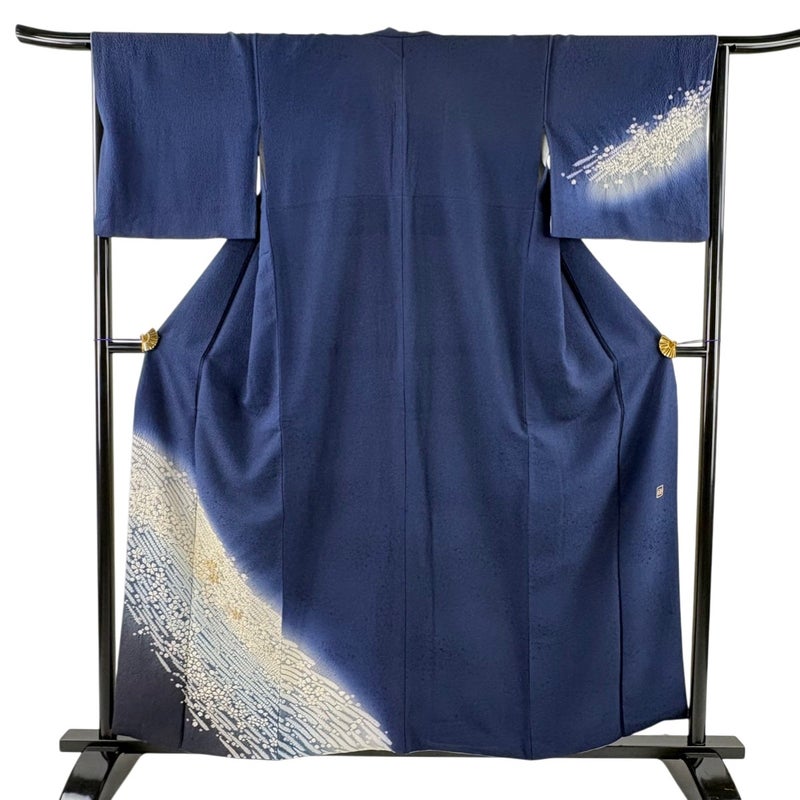 【付下げ】 青系 紺色 名品 B 約150cm~約159cm 裄丈65cm (M)size 袖丈46cm以下 9990-29990 二万以下