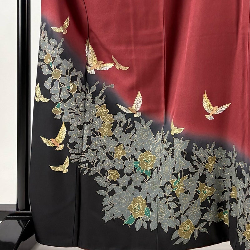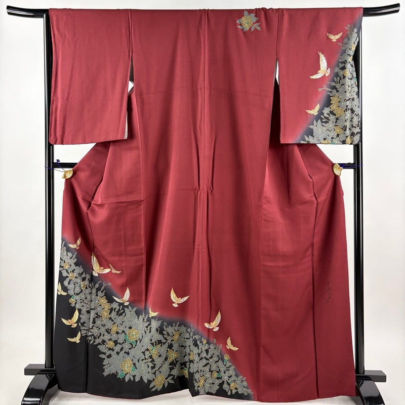 【付下げ】 赤系 えんじ色 名品 C 約160cm~約169cm 裄丈66cm (M)size 袖丈50cm-60cm 9990-29990 二万以下