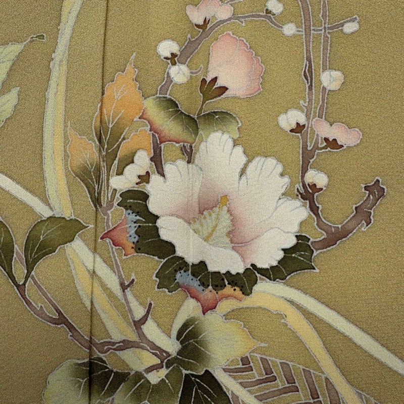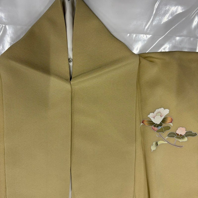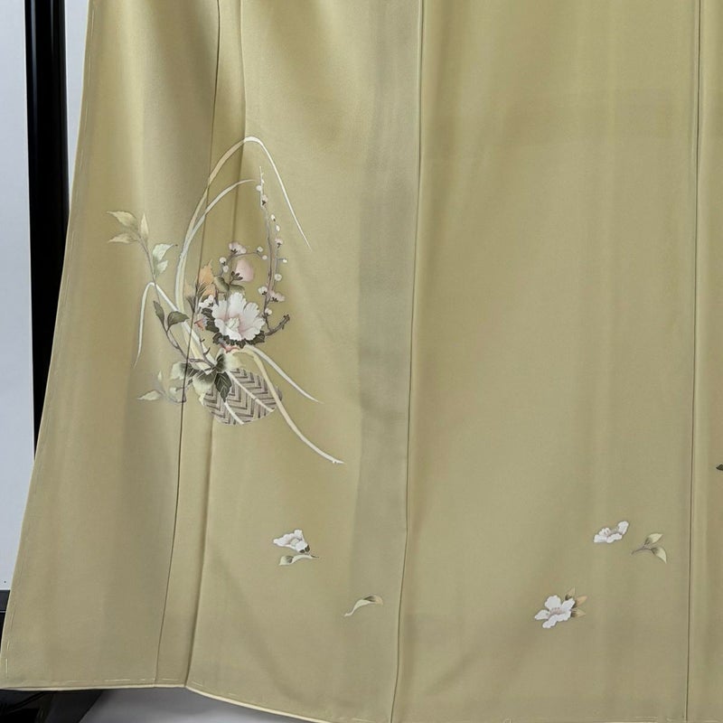 【付下げ】 黄色系 薄黄土色 名品 A 約160cm~約169cm 裄丈66cm (M)size 袖丈50cm-60cm 9990-29990 美品 二万以下