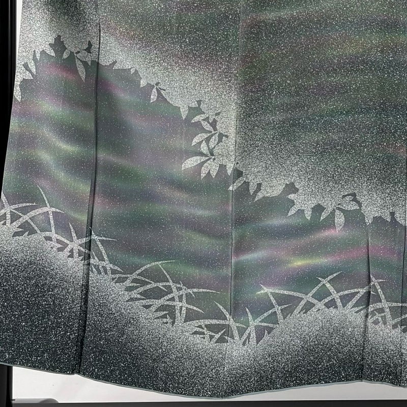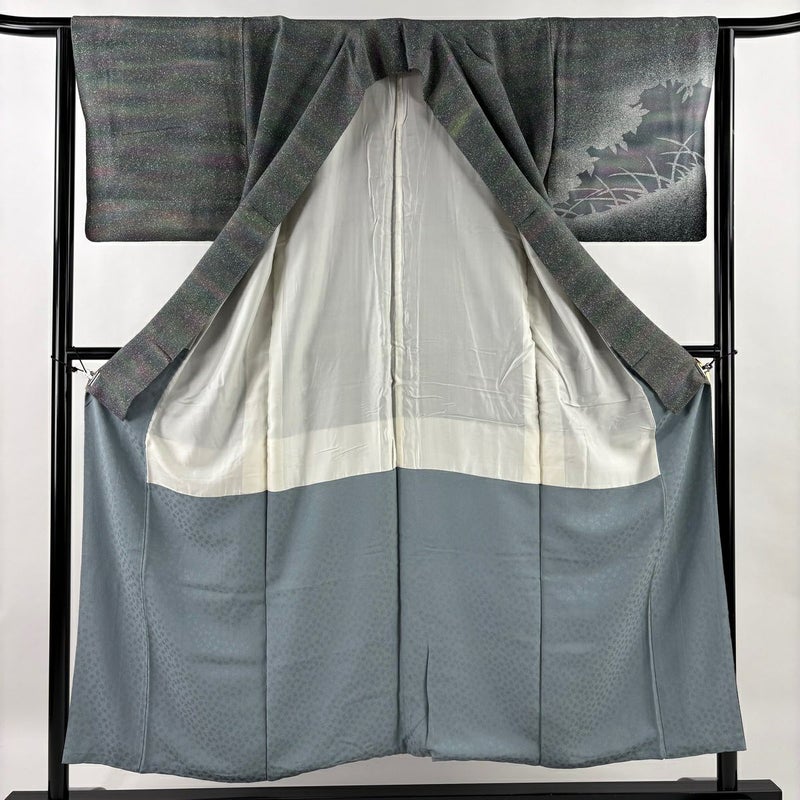 【付下げ】 灰色系 灰緑 名品 A 約150cm~約159cm 裄丈63cm-64cm (M)size 袖丈46cm以下 9990-29990 美品 二万以下