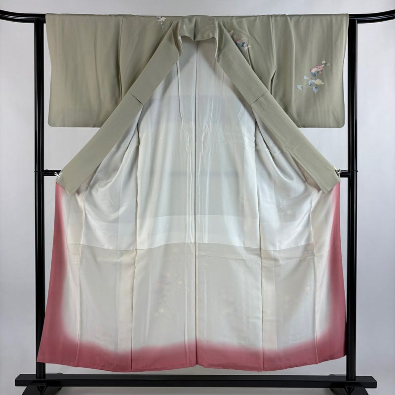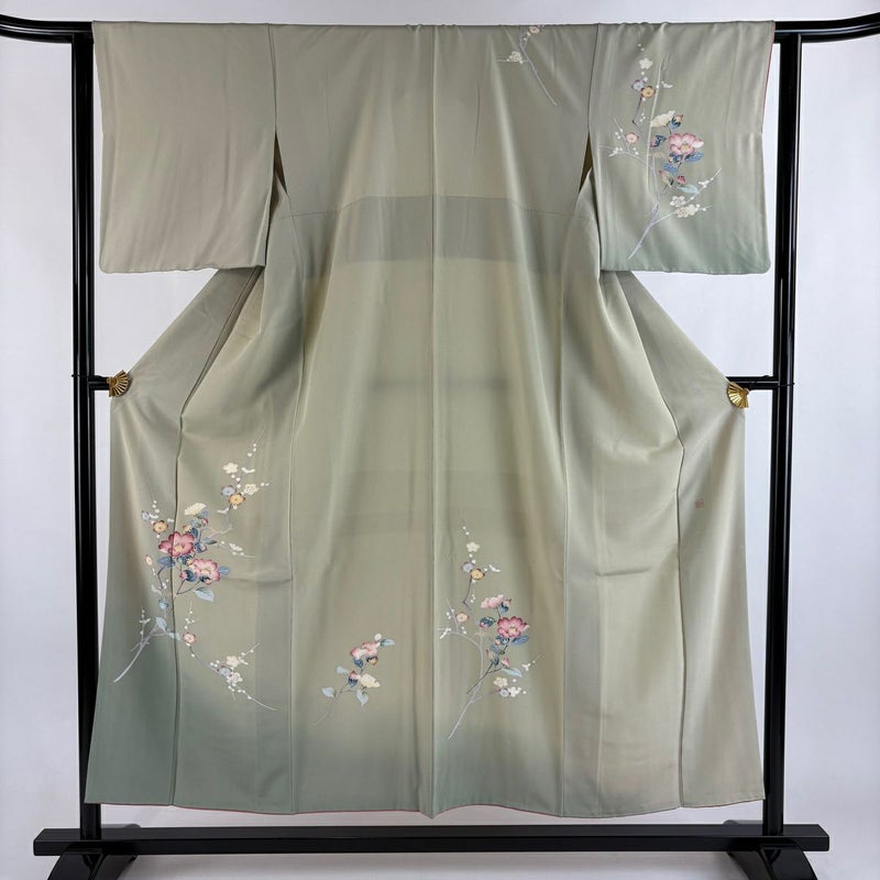 【付下げ】 灰色系 灰緑 秀品 B 約150cm~約159cm 裄丈63cm-64cm (S)size 袖丈47cm 4000-7980 二万以下