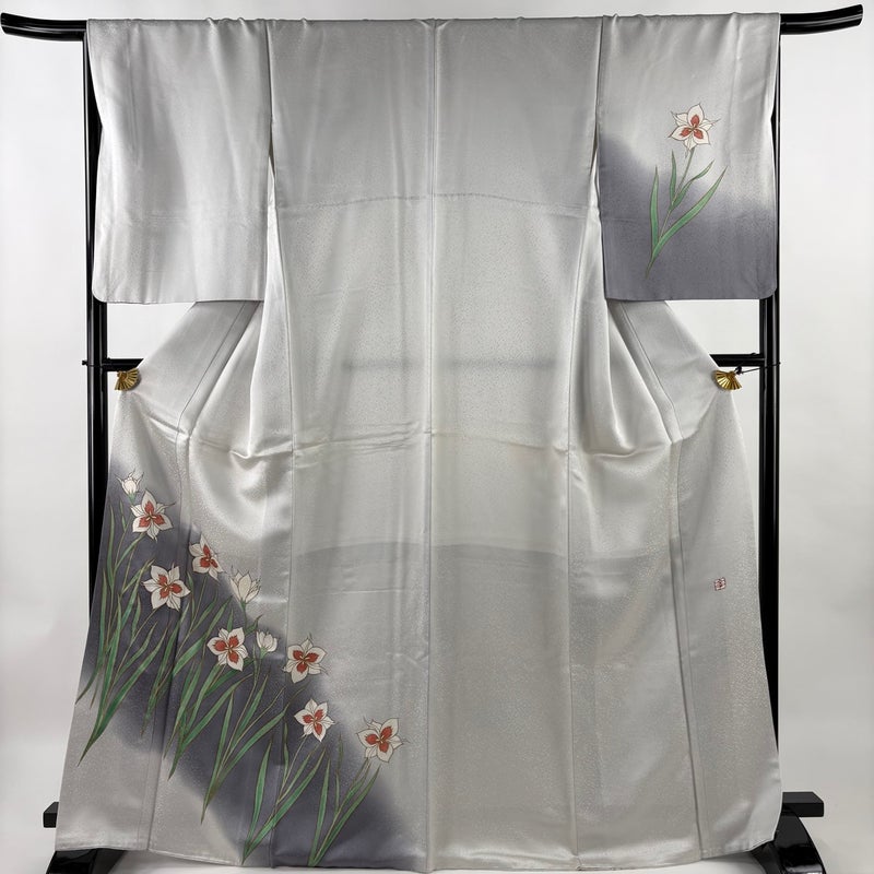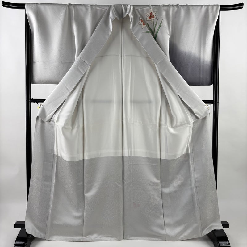 【付下げ】 灰色系 灰白 優品 B 約160cm~約169cm 裄丈67cm-68cm (L)size 袖丈50cm-60cm -3980 二万以下
