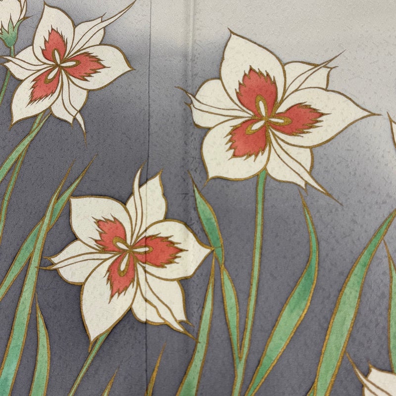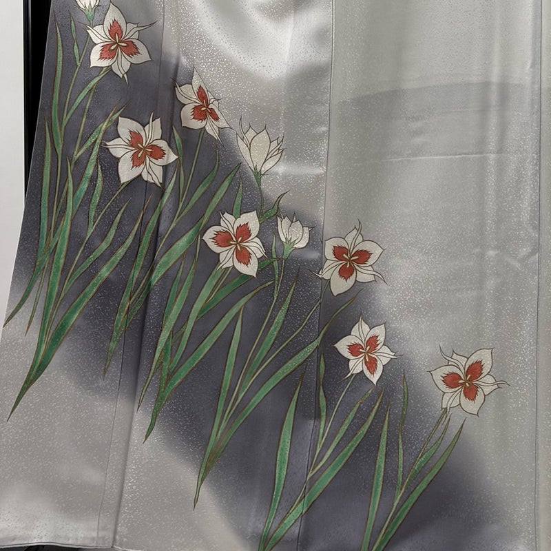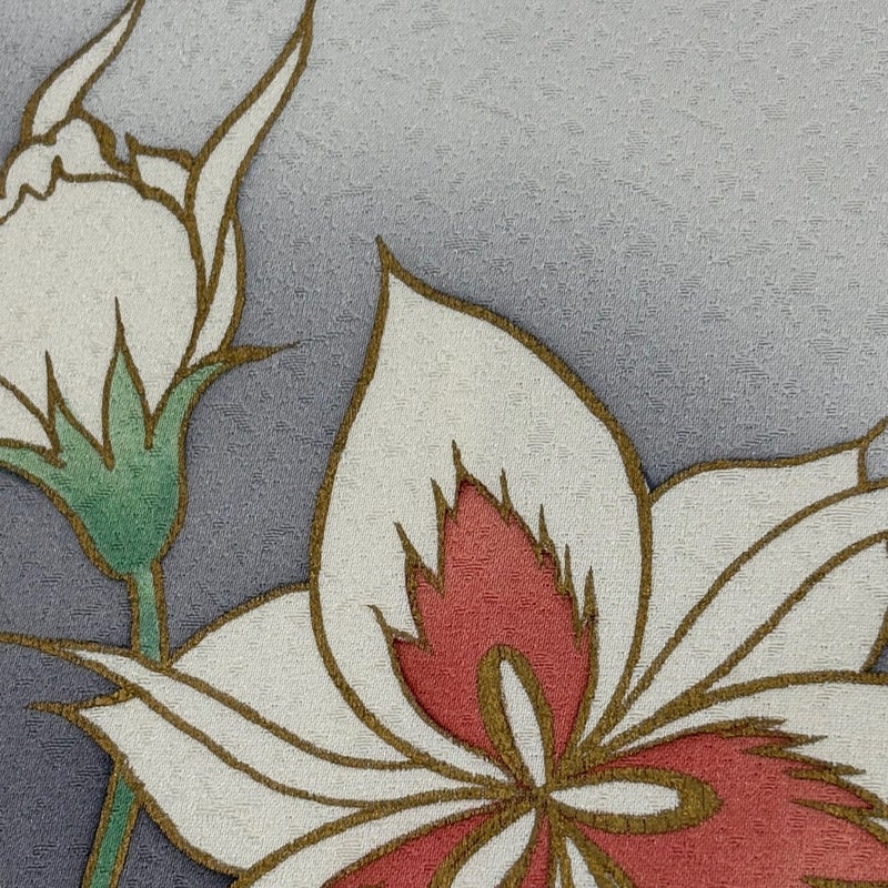 【着物ランク】優品 【素材】正絹 【身丈】約168.5cm 【裄丈】約67.5cm 【袖丈】約56.5cm 【袖幅】約34.5cm 【前幅】約26.5cm 【後幅】約30.5cm 【サイズ】L 【着物仕立て】袷 【着用時期】10~5月 【状態ランク】ランクB 【着物着用シーン】披露宴、パーティー、式典、食事会、お茶会、正月