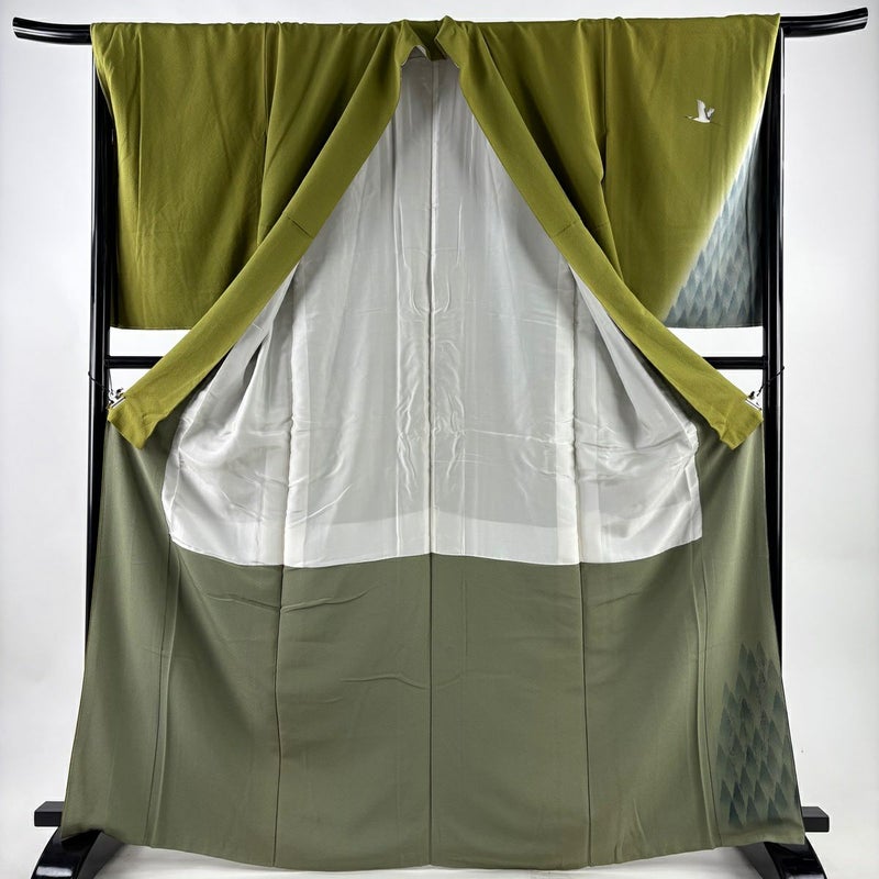 【付下げ】 緑系 抹茶色 秀品 C 約160cm~約169cm 裄丈65cm (M)size 袖丈61cm~90cm 4000-7980 二万以下