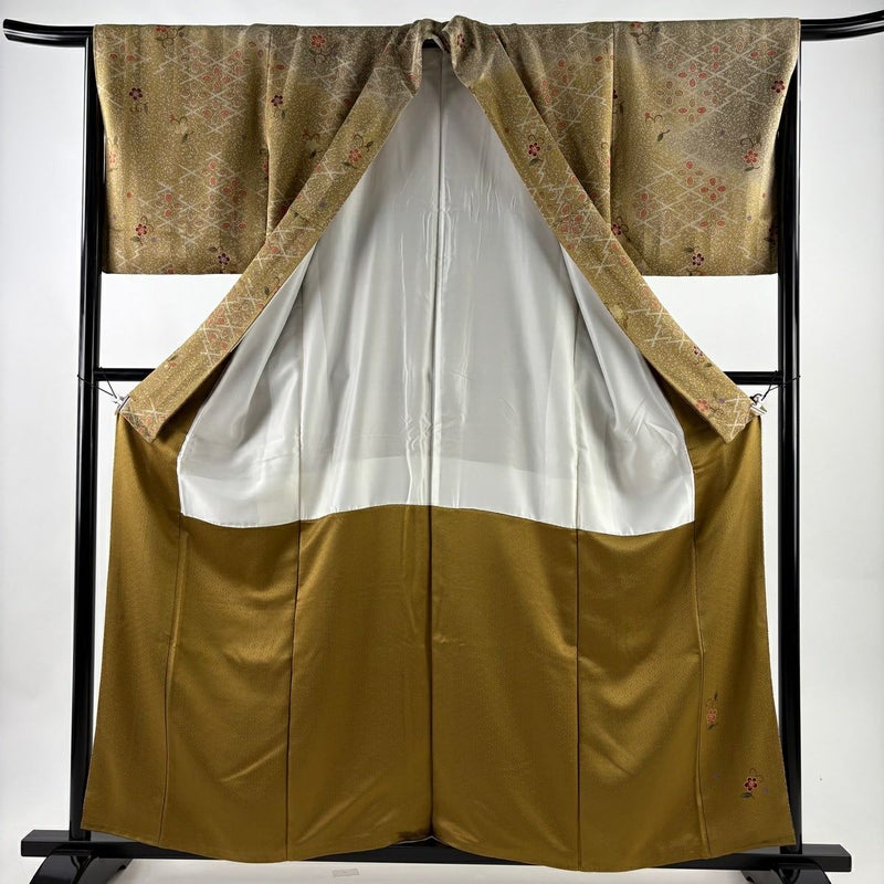 【付下げ】 茶系 茶緑色 秀品 B 約150cm~約159cm 裄丈66cm (M)size 袖丈47cm 7990-9980 二万以下