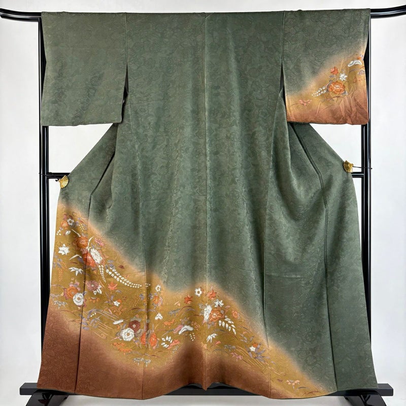 【付下げ】 灰色系 灰緑 秀品 C 約150cm~約159cm 裄丈66cm (M)size 袖丈48cm 4000-7980 二万以下