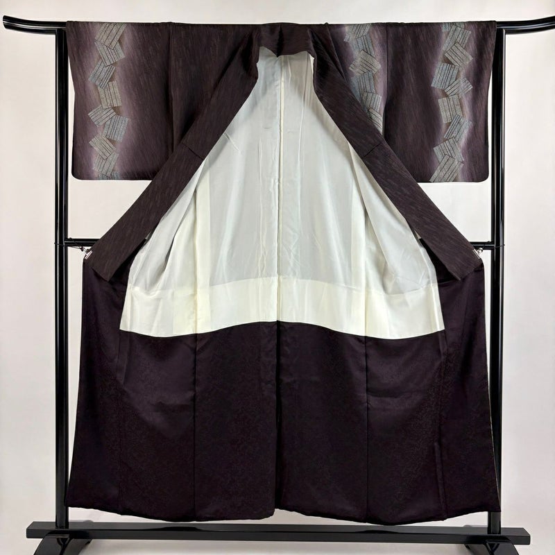 【付下げ】 茶系 茶紫 秀品 A 約150cm~約159cm 裄丈63cm-64cm (M)size 袖丈48cm 7990-9980 美品 二万以下