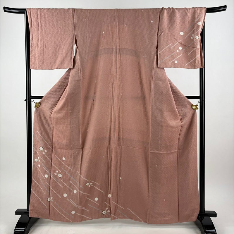 【付下げ】 赤系 ピンクベージュ 秀品 B 約160cm~約169cm 裄丈67cm-68cm (M)size 袖丈47cm 4000-7980 二万以下