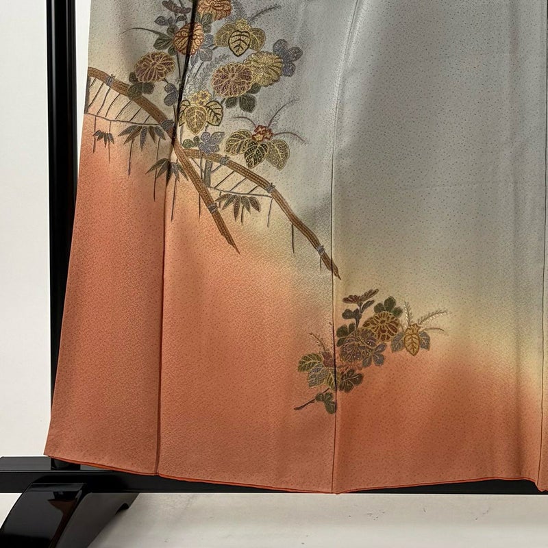 【着物ランク】秀品 【素材】正絹 【身丈】約160cm 【裄丈】約65.5cm 【袖丈】約49cm 【袖幅】約34cm 【前幅】約24.5cm 【後幅】約30cm 【サイズ】M 【着物仕立て】袷 【着用時期】10~5月 【状態ランク】ランクB 【着物着用シーン】披露宴、パーティー、式典、食事会、お茶会、正月