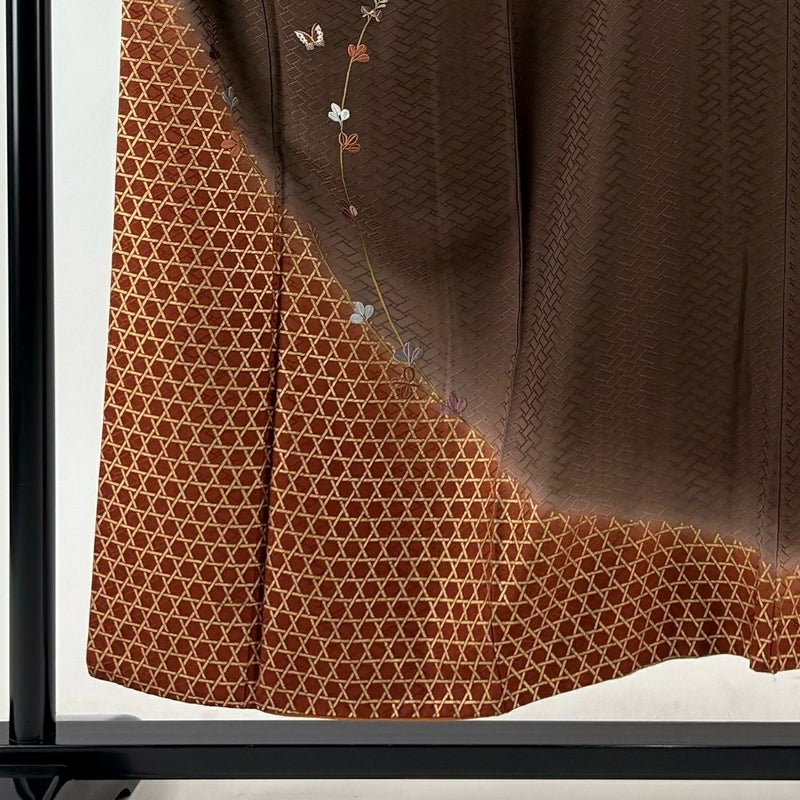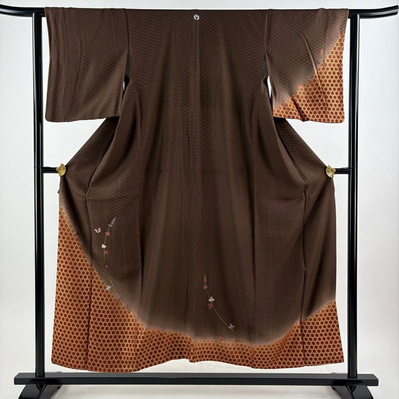 【付下げ】 茶系 焦茶色 秀品 A 約150cm~約159cm 裄丈62cm以下 (S)size 袖丈49cm 7990-9980 美品 二万以下