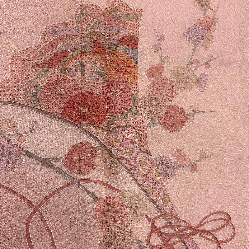 【付下げ】 赤系 ピンク 秀品 B 約150cm~約159cm 裄丈63cm-64cm (M)size 袖丈48cm 4000-7980 二万以下