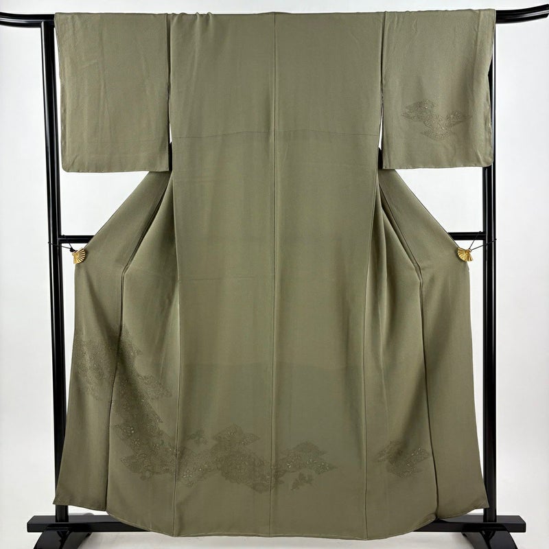 【付下げ】 灰色系 灰緑 秀品 B 約150cm~約159cm 裄丈66cm (M)size 袖丈48cm 4000-7980 二万以下