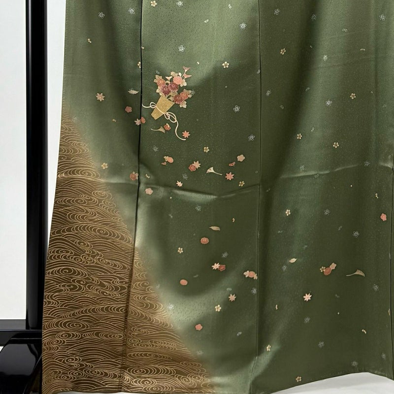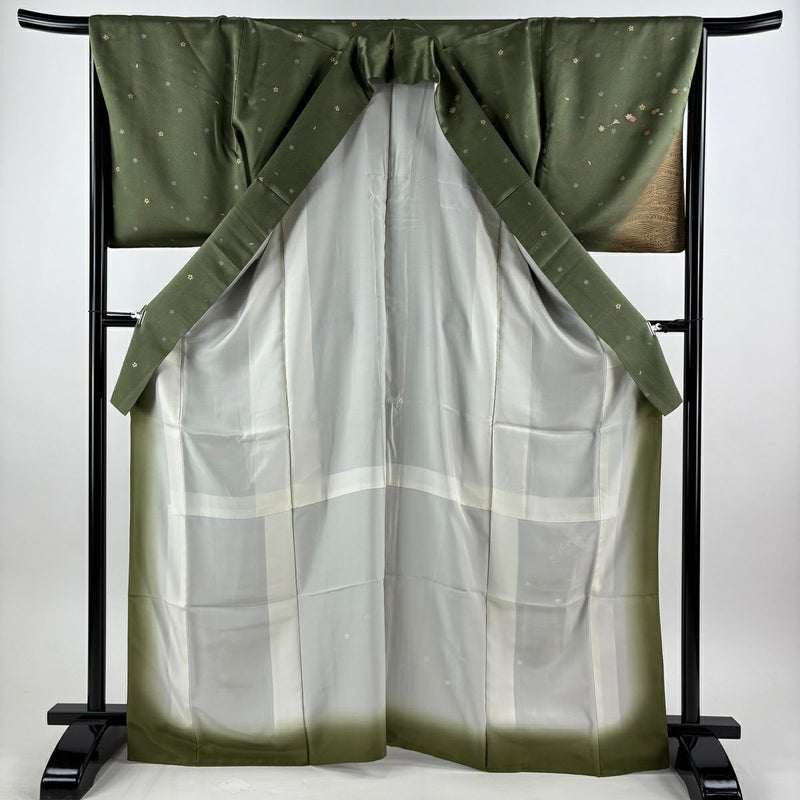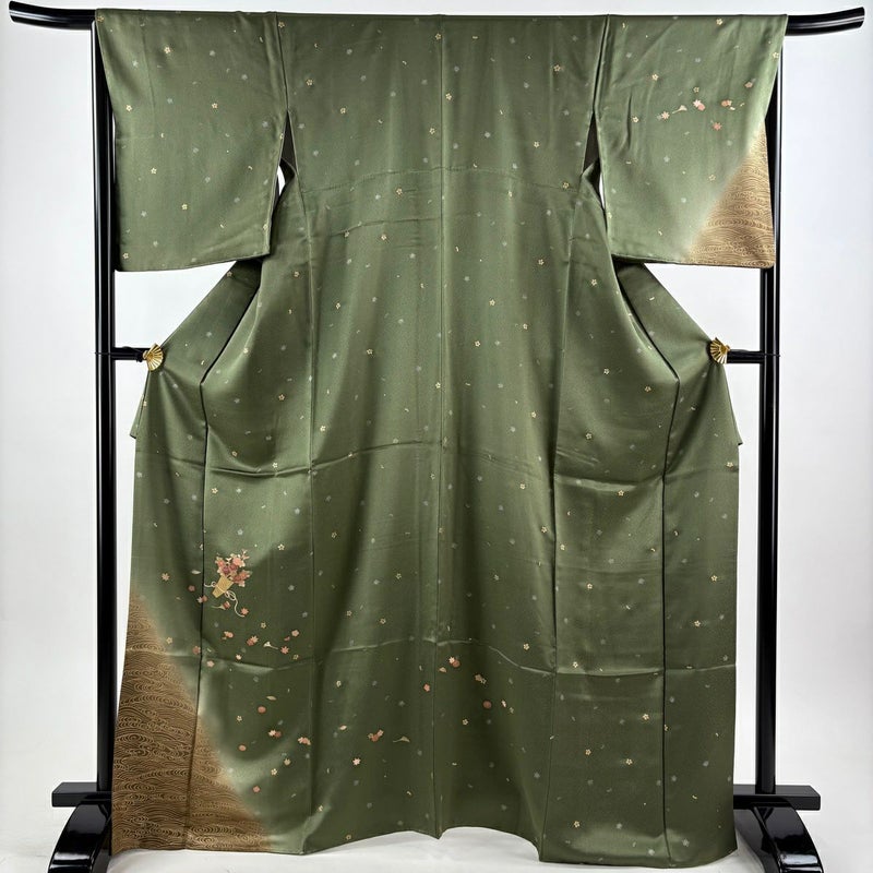 【付下げ】 茶系 茶緑色 秀品 B 約160cm~約169cm 裄丈67cm-68cm (L)size 袖丈50cm-60cm 4000-7980 二万以下