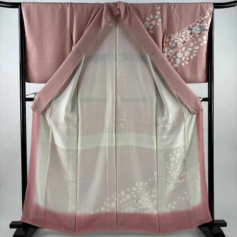 【付下げ】 赤系 ピンク 秀品 A 約160cm~約169cm 裄丈66cm (M)size 袖丈46cm以下 7990-9980 美品 二万以下