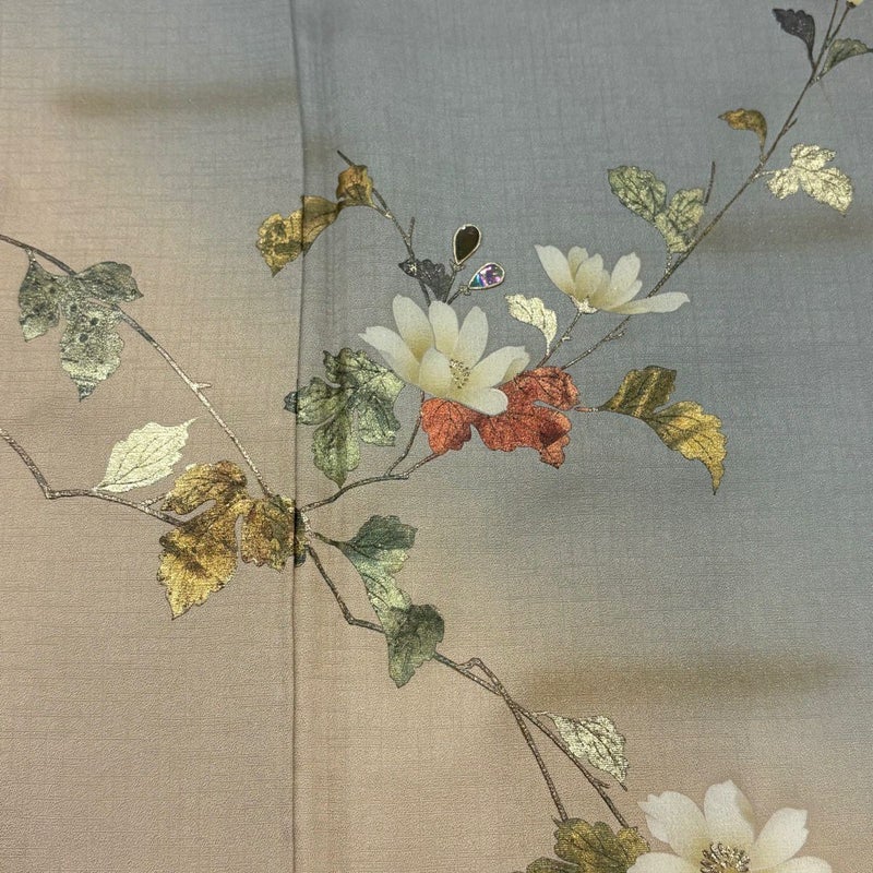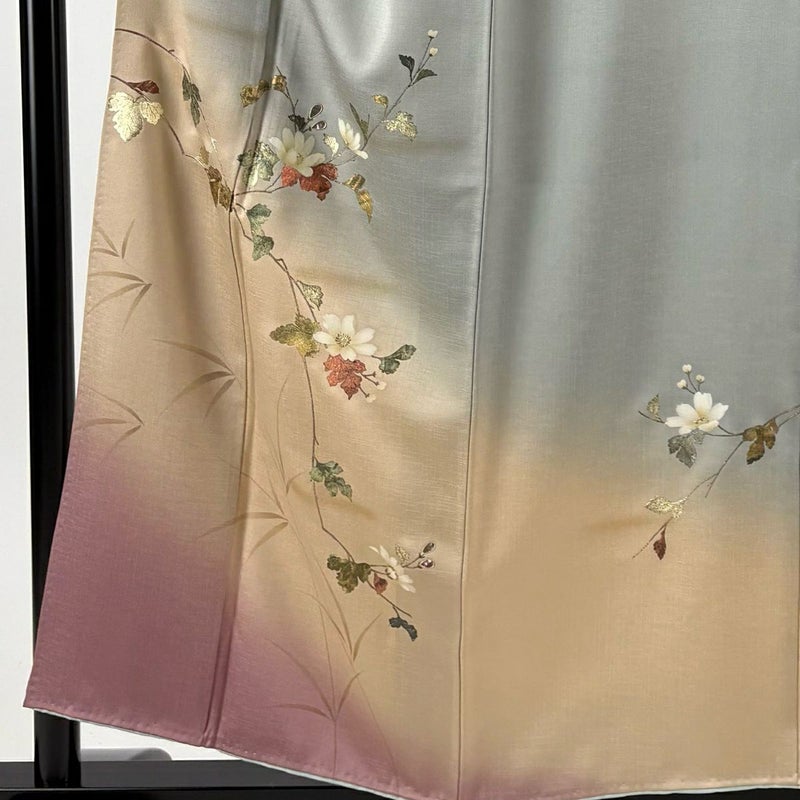【着物ランク】秀品 【素材】正絹 【身丈】約157cm 【裄丈】約65cm 【袖丈】約49cm 【袖幅】約33cm 【前幅】約23.5cm 【後幅】約29.5cm 【サイズ】M 【着物仕立て】袷 【着用時期】10~5月 【状態ランク】ランクB 【着物着用シーン】披露宴、パーティー、式典、食事会、お茶会、正月