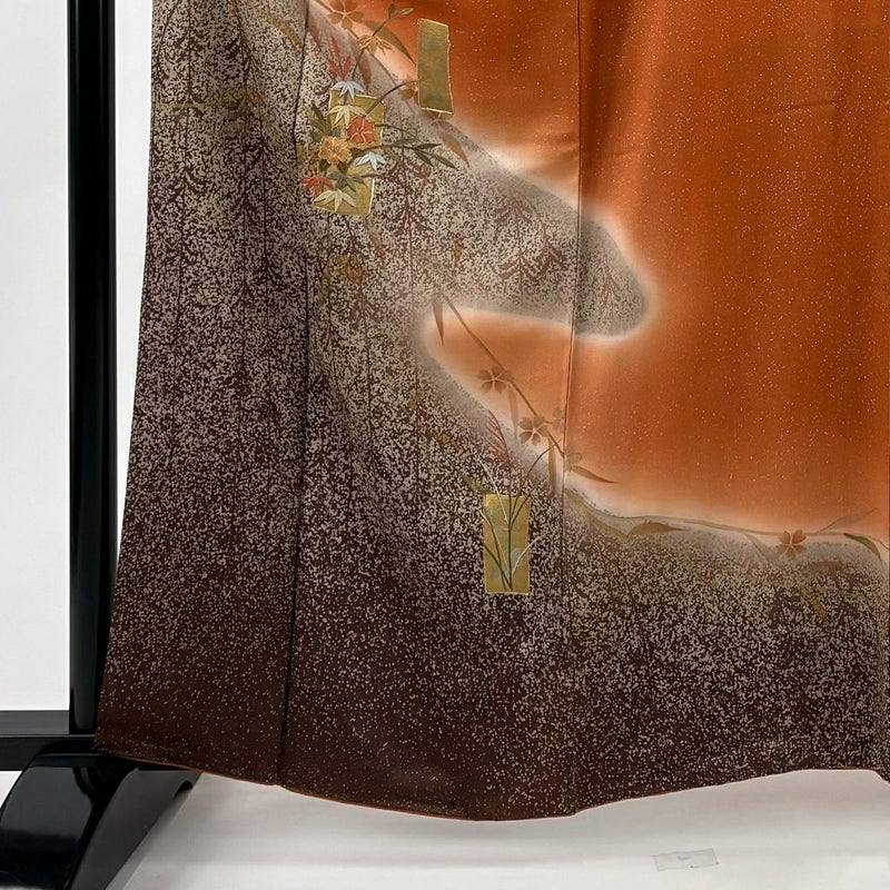 【付下げ】 赤系 オレンジ 秀品 A 約160cm~約169cm 裄丈65cm (M)size 袖丈50cm-60cm 7990-9980 美品 二万以下