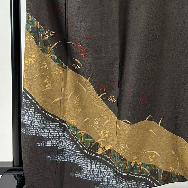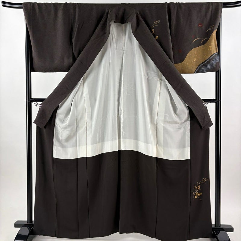 【付下げ】 茶系 焦茶色 秀品 C 約160cm~約169cm 裄丈69cm以上 (L)size 袖丈49cm 4000-7980 二万以下