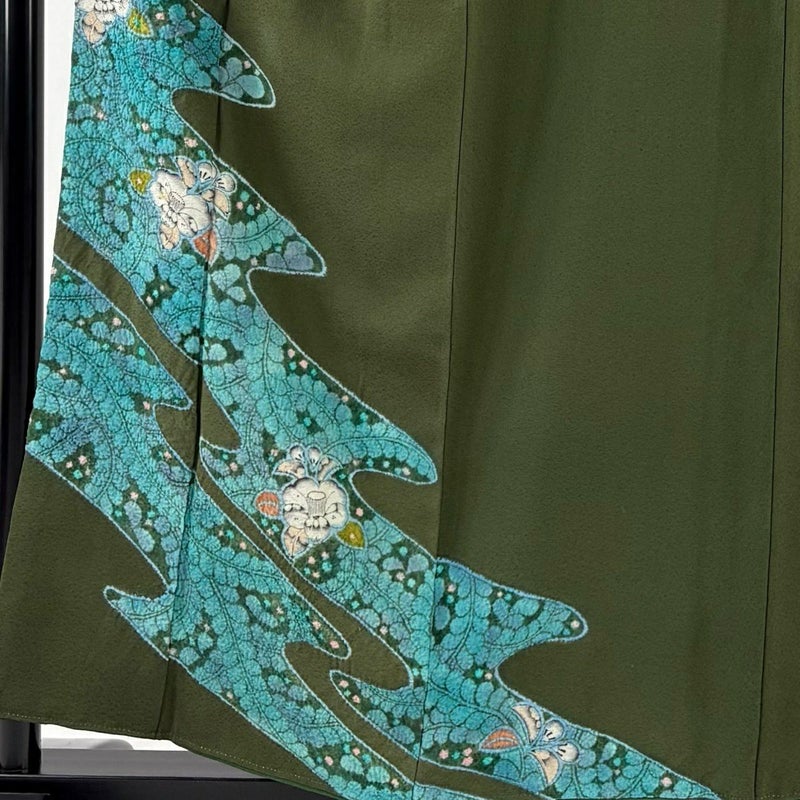 【付下げ】 緑系 深緑 秀品 B 約150cm~約159cm 裄丈65cm (M)size 袖丈48cm 4000-7980 二万以下