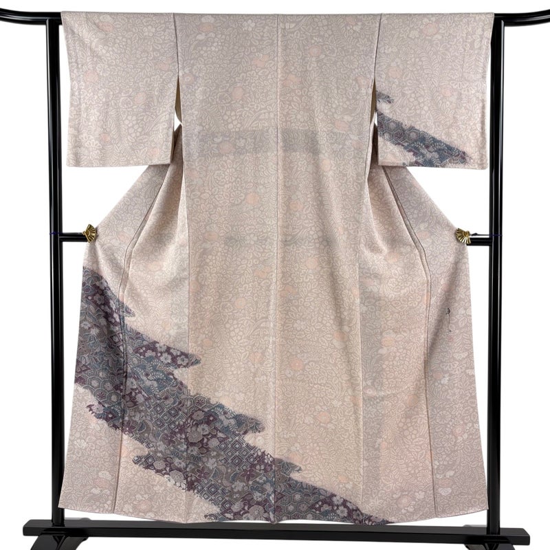 合わせる帯の色柄により、お召しいただく席を選べる付下げです。 帯により印象を変える事の出来る印象のお着物は、様々に活躍してくれることでしょう。 ※身丈・裄丈の縫込みの長さは測っておりません。 後身頃の所々にシミ、衿周りや両袖口中と重ね衿に汚れがございます。 裏地所々にヤケ、胴裏所々にシミ、八掛裾部分所々に薄汚れ、裏地所々にシワがございます。 リユース品としては良い状態で、まだまだご活用頂けると思われます。 ※なお、厳しく商品の状態確認を行っておりますが、記載の汚れ以外にも見落とし箇所がある可能性がある旨ご了承いただけますと幸いです。 沢山の商品の中からご覧いただき誠にありがとうございます。 【PR2】