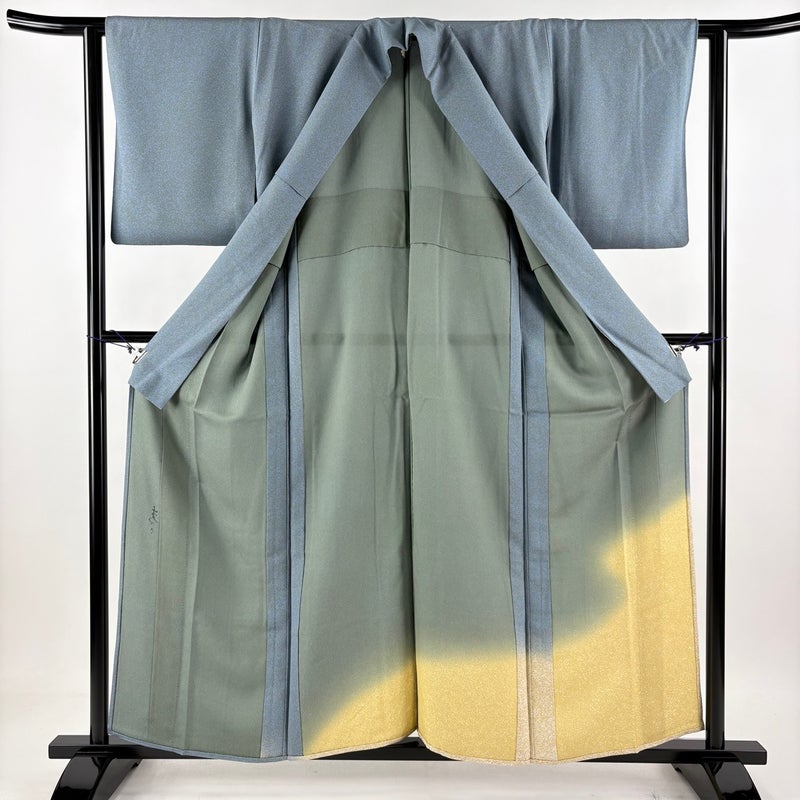 【付下げ】 灰色系 青灰色 名品 A 約150cm~約159cm 裄丈62cm以下 (S)size 袖丈47cm 9990-29990 美品 五万以下
