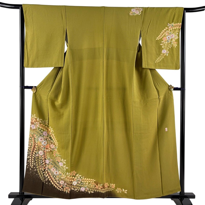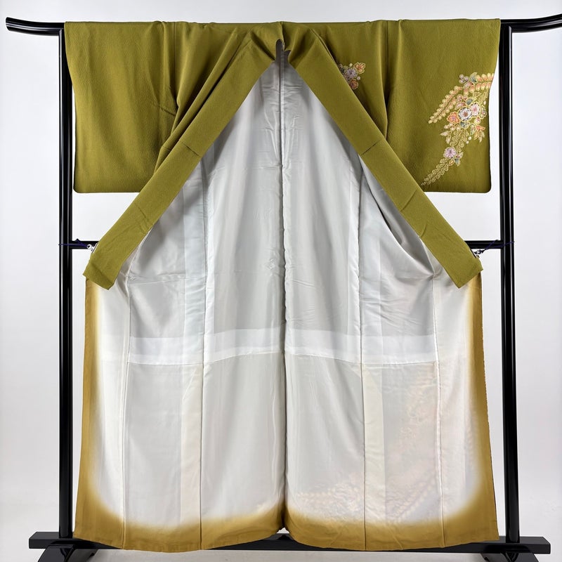 【付下げ】 緑系 鶯色 名品 B 約150cm~約159cm 裄丈63cm-64cm (S)size 袖丈50cm-60cm 9990-29990 二万以下