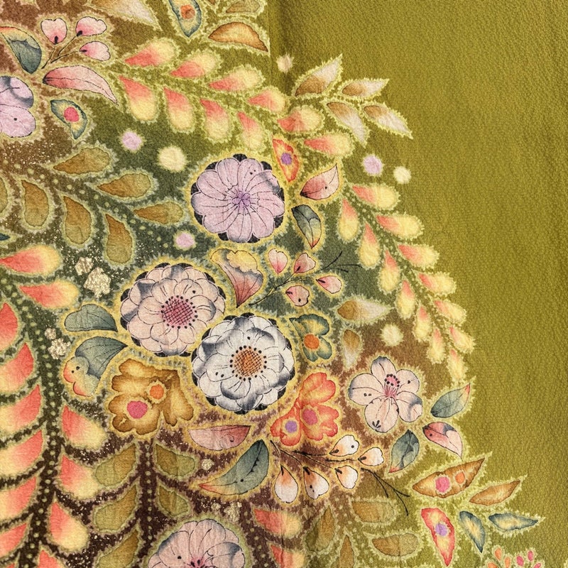 十日町の老舗、本格派辻が花で有名な翠山工房の作品です。 合わせる帯の色柄により、お召しいただく席を選べる付下げです。 帯により印象を変える事の出来る印象のお着物は、様々に活躍してくれることでしょう。 ※身丈・裄丈の縫込みの長さは測っておりません。 表地所々にヤケ、衿周りや両袖口中に薄汚れ、右袖前後にシワがございます。 衿裏にホックシミ、裏地所々にシワがございます。 リユース品としては良い状態で、まだまだご活用頂けると思われます。 ※なお、厳しく商品の状態確認を行っておりますが、記載の汚れ以外にも見落とし箇所がある可能性がある旨ご了承いただけますと幸いです。 沢山の商品の中からご覧いただき誠にありがとうございます。