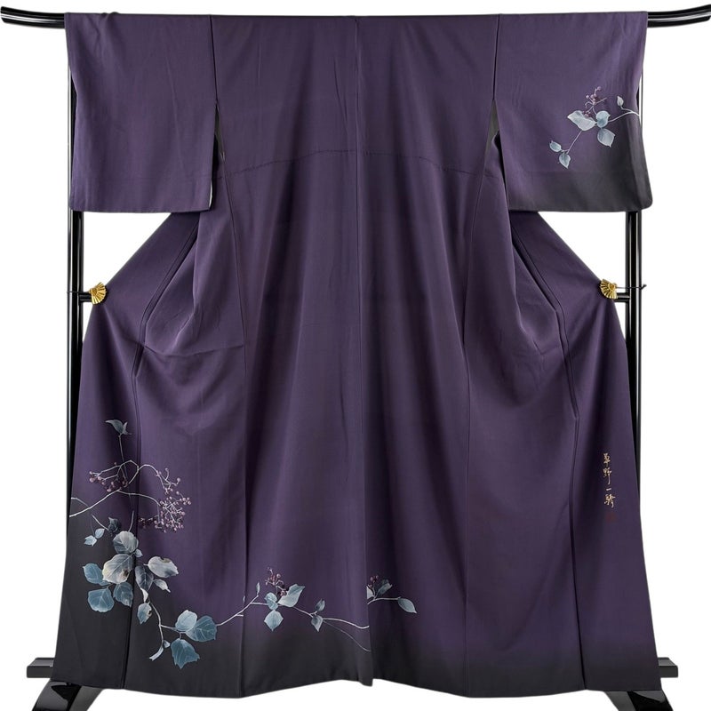 【着物ランク】名品 【素材】正絹 【身丈】約161cm 【裄丈】約68cm 【袖丈】約49cm 【袖幅】約34cm 【前幅】約28cm 【後幅】約33.5cm 【サイズ】L 【着物仕立て】袷 【着用時期】10~5月 【状態ランク】ランクC 【作家名】草野一騎 【着物着用シーン】披露宴、パーティー、式典、食事会、お茶会、正月